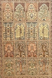 高度に対称化され、精密な曲線で描かれたアラベスクは、カルトン(設計図)に基づく都市工房での制作を示すことが多いとされます。逆に対称性に崩れがある場合は村落・部族制作の可能性が高まります。崩れの評価については後述のアブラッシュと同様、経験的な目安として「全体に一定のリズムを保ちながら崩れている場合は手仕事の個性」、「特定の箇所だけ急に乱れている場合は技術的なムラや修復の跡」と見るケースが多いですが、最終的には実物を見て判断する必要があります。